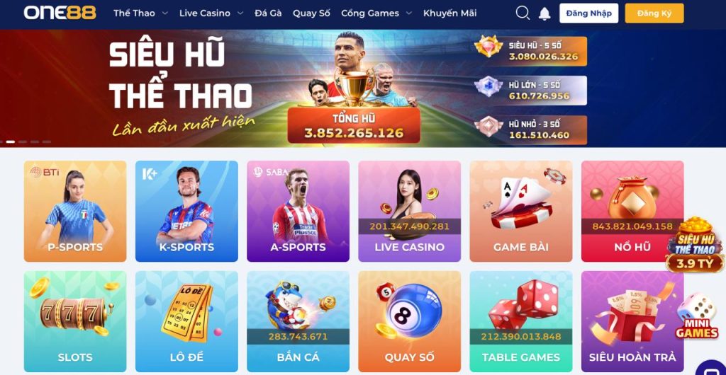 ONE88 Tự hào là một trong những nhà cái cung cấp dịch vụ thể thao đa dạng nhất. Bạn có thể cá cược trên hàng trăm môn thể thao, bao gồm bóng đá, bóng rổ, tennis, đua ngựa và nhiều môn thể thao khác. Các sự kiện thể thao lớn như World Cup, Euro hay NBA đều có mặt với tỷ lệ cược hấp dẫn.